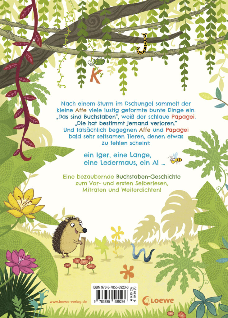 Loewe-Bücher: garantiert ohne KI Nach einem Sturm im Dschungel sammelt der kleine Affe viele lustig geformte bunte Dinge ein. „Das sind Buchstaben“, weiß der schlaue Papagei. „Die hat bestimmt jemand verloren.“ Und tatsächlich begegnen Affe und Papagei bald sehr seltsamen Tieren, denen etwas zu fehlen scheint: ein Iger, eine Lange, eine Ledermaus, ein Al … Eine bezaubernde Buchstaben-Geschichte zum Vor- und ersten Selberlesen, Mitraten und Weiterdichten! Die amüsante Vorlesegeschichte von…