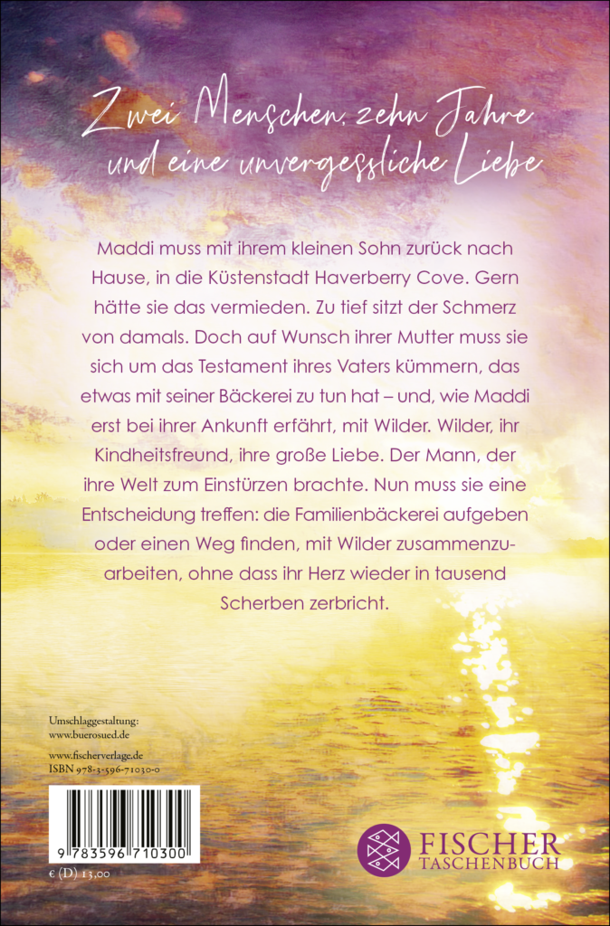 Zwei Menschen, zehn Jahre und eine unvergessliche Liebe Maddi muss mit ihrem kleinen Sohn zurück nach Hause, in die Küstenstadt Haverberry Cove. Gern hätte sie das vermieden. Zu tief sitzt der Schmerz von damals, zu viele Gefühle sind ungeklärt. Doch auf Wunsch ihrer Mutter muss sie sich um das Testament ihres Vaters kümmern, das etwas mit seiner Bäckerei zu tun hat – und wie Maddi erst bei ihrer Ankunft erfährt…